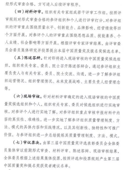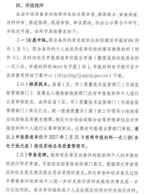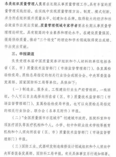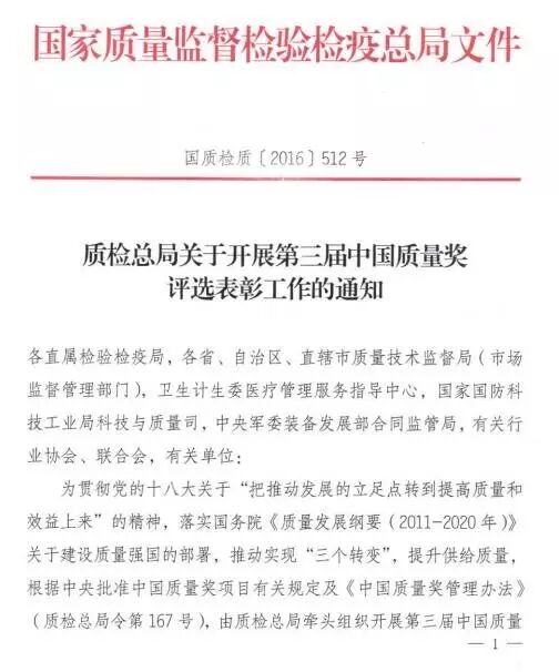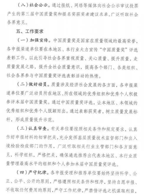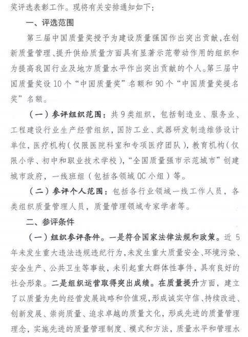 《关于开展第三届中国质量奖评选表彰工作的通知》