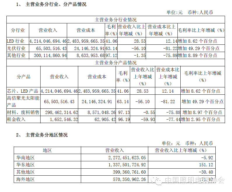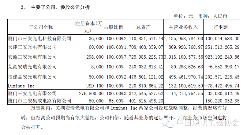 报告期内,公司在LED外延芯片业务上,积极拓展了国际市场,与东南亚、欧美、日本、韩国等地区国际大厂都有开展业务,海外销售额大幅增长。在LED应用上,公司控股子公司安瑞光电从事的应用产品业务已得到多款汽车厂商的认证,已开始陆续供货部分车型,后续业务也将会逐步扩大;美国流明公司生产的CBT-90白光LED被应用于美国新世界贸易中心顶部的灯塔,PT120绿色光源应用在波音787梦幻客机在内的商业航空公司飞行器中,PT54红、绿 、 蓝(RGB)芯片组被应用在惠普 Sprout的照明源中,PT54已被使用在HP Sprout的投影,紫外芯片已经被具有德克萨斯仪器厂(Texas Instrument)DLPTM技术的高分辨率3D打印机的生产厂商所采用于开发设计中。随着美国流明业务的不断渗透,其市场前景将会非常广阔。