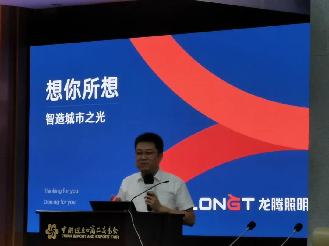龙腾照明集团股份有限公司研发中心副总经理王辰以《想你所想—智慧灯杆设计与技术》为题,讲述了龙腾集团共享研发与经验、助力客户的发展方向,近年来各省市交付的灯杆与落地服务项目,并介绍了新成立的龙腾智慧城市规划设计院。