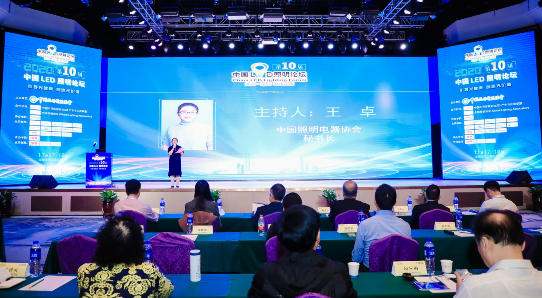 由中国照明电器协会主办的 “2020中国LED照明论坛”于2020年11月18日在深圳宝亨达国际大酒店隆重召开。本届论坛得到了全球照明协会(Global Lighting Association)、中国半导体照明/LED产业与应用联盟的支持和协助。中国照明电器协会理事长陈燕生、秘书长王卓、副秘书长温其东,中国照协副理事长、杭州宇中高虹照明电器有限公司董事长张林夫,中国照协监事长、南京工业大学电光源材料研究所所长王海波,欧普照明股份有限公司、浙江阳光照明电器集团股份有限公司、惠州雷士光电科技有限公司、横店集团得邦照明股份有限公司、广东三雄极光照明股份有限公司、厦门通士达有限公司、昕诺飞(中国)投资有限公司等中国照协副理事长单位代表,以及各地方协会领导和嘉宾出席了本届大会,中国照协王卓秘书长主持开幕式。